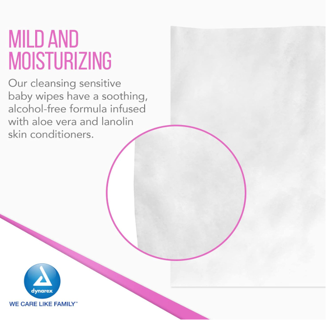 Dynarex Baby Wipes are designed for soothing, gentle cleansing while moisturizing skin.