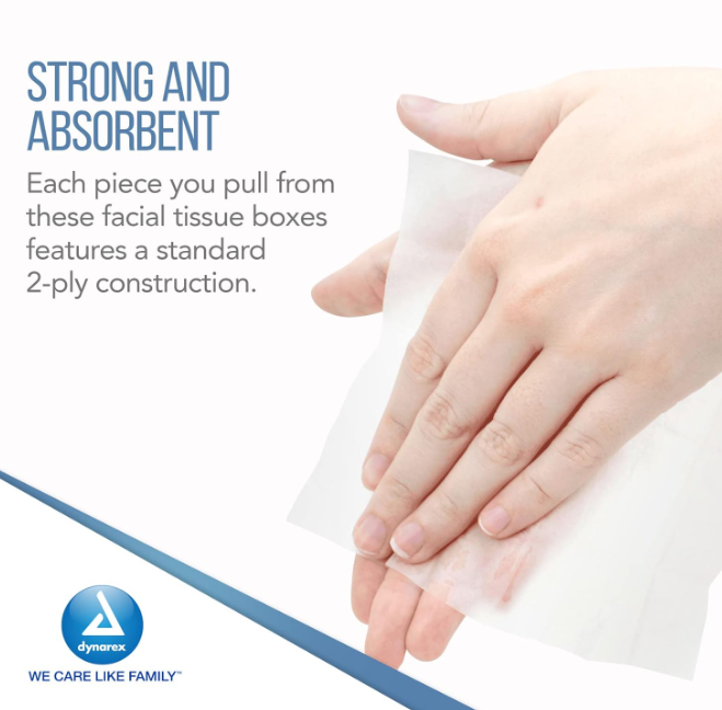 Dynarex Facial Tissues are designed to be soft and delicate for sensitive skin.