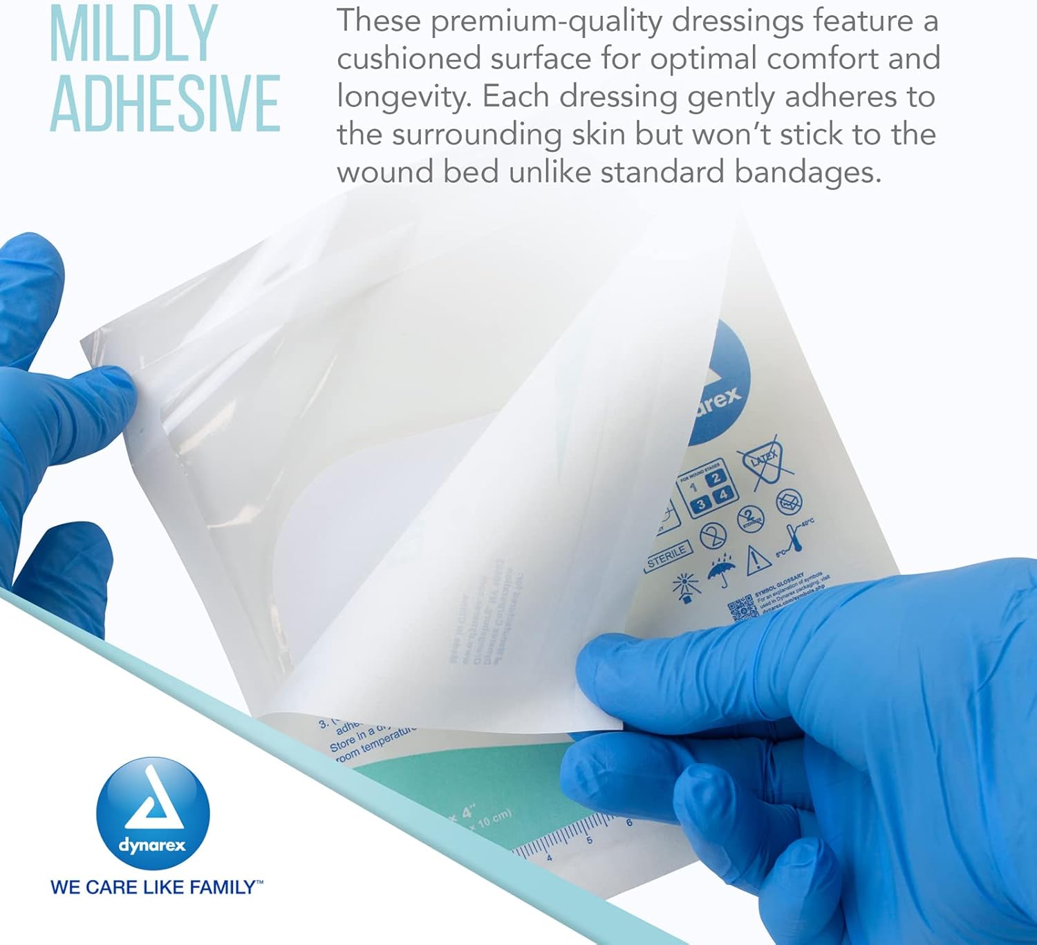 Dynarex DynaDerm - Hydrocolloid Dressing - Thin, 4" x 4", 10ea/bx, 12bxs/cs (120 Count)