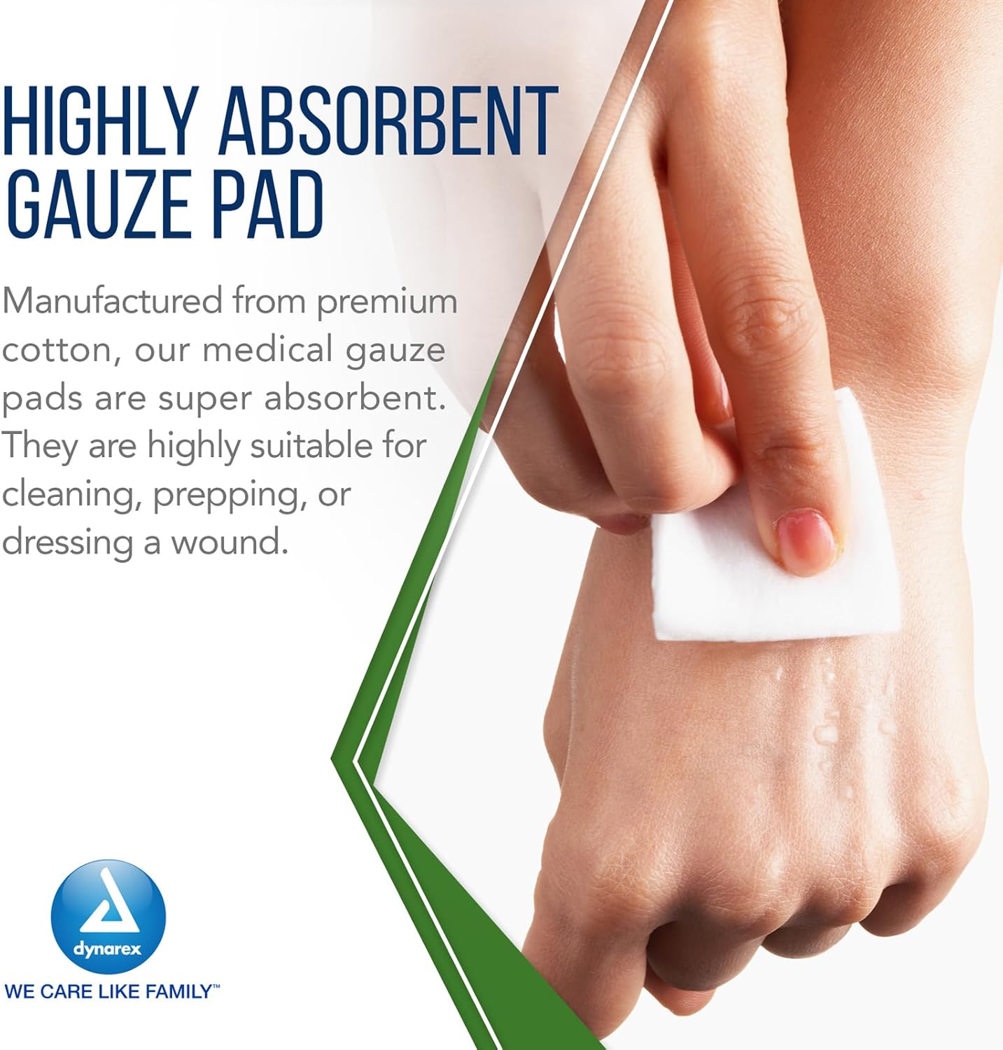 - Highly absorbent, 100% cotton gauze (woven)