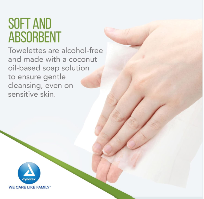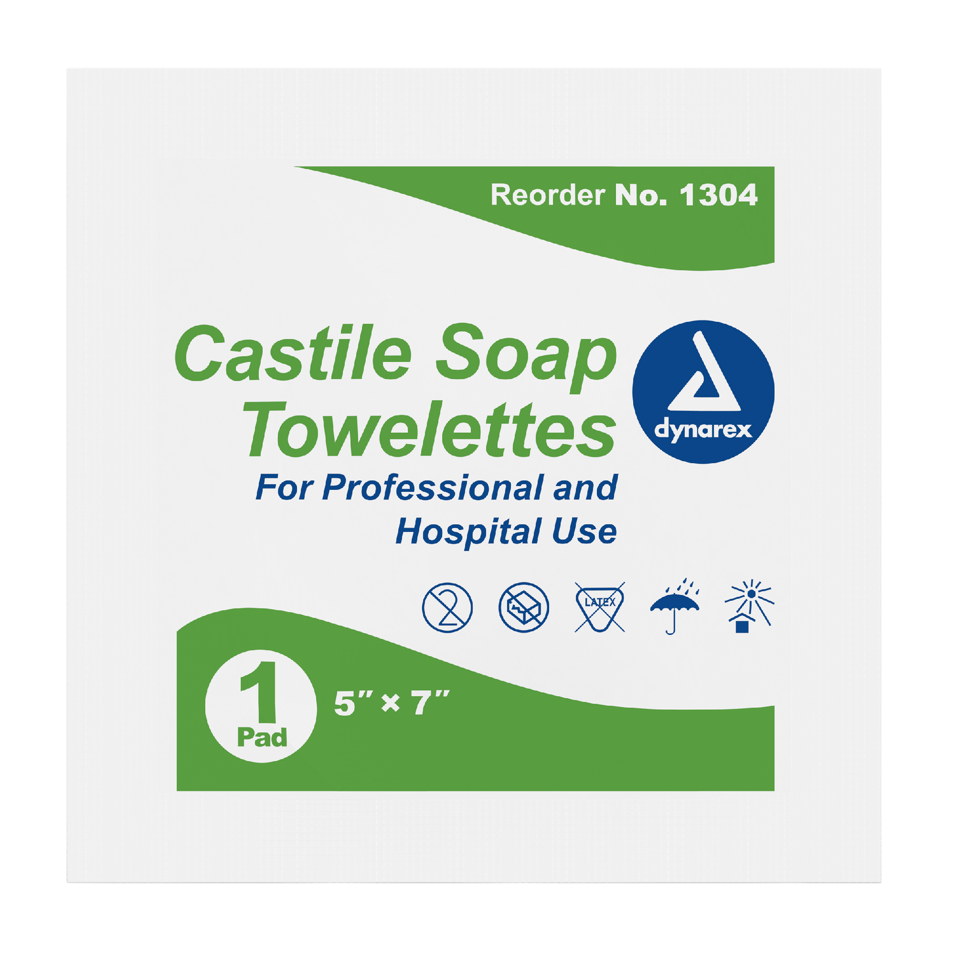 Dynarex Castille Soap Towelettes are soft, alcohol-free wipes, featuring a PH-balanced coconut oil-based soap solution for gentle cleansing. These Castille Soap Towelettes are designed for use in midstream clean-catch urine specimen procedures. The single-use, individually wrapped wipes are ideally sized for first aid kits, medical offices, schools, home use, and variety of other settings.