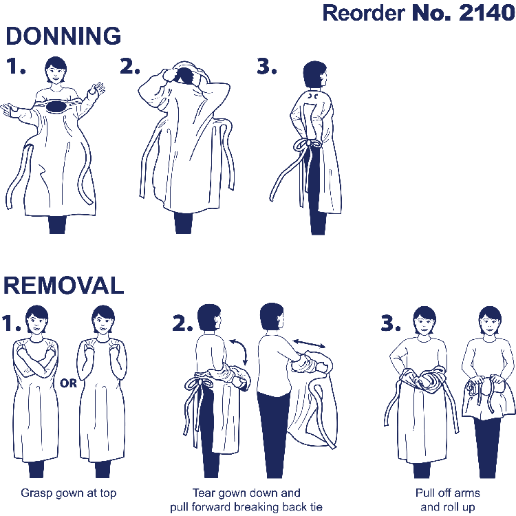 - Gowns feature elastic cuffs, sewn seams, and extra-long waist ties