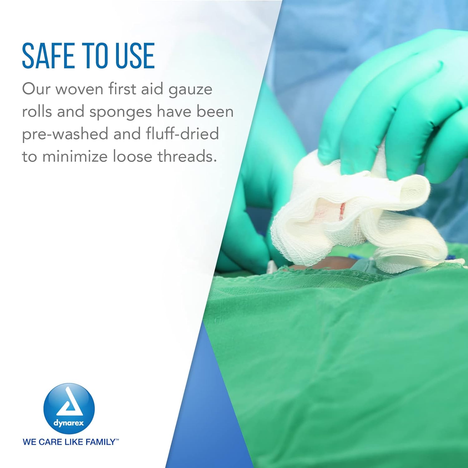Dynarex Krinkle Gauze Rolls and Sponges are highly absorbent 100% cotton dressings designed to provide cushioning support and protection for sensitive wound areas.