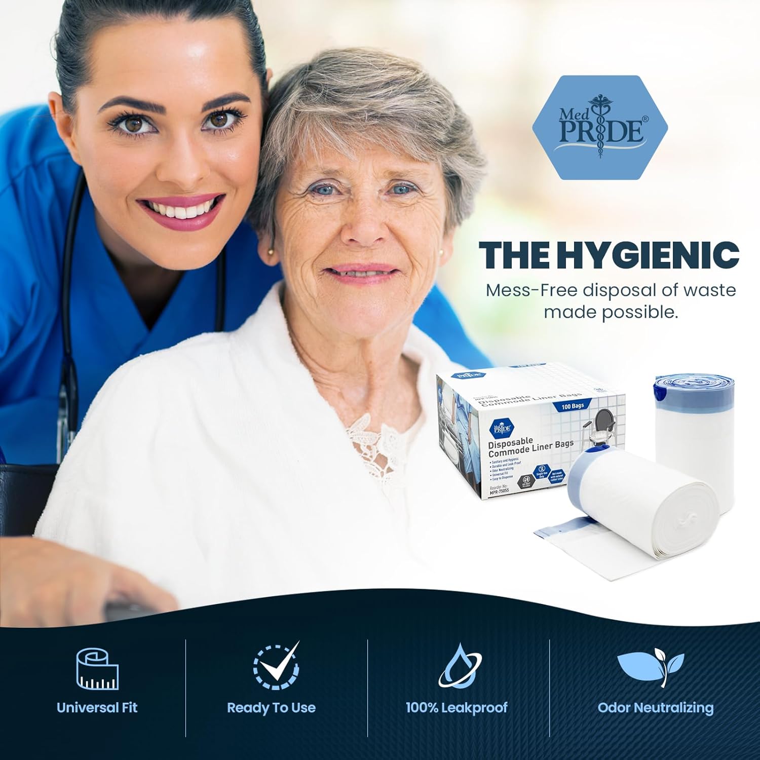 Experience ultimate comfort and cleanliness with the MedPride Disposable Commode Liner Bags, Say Goodbye to unpleasant odors and messy cleanups!