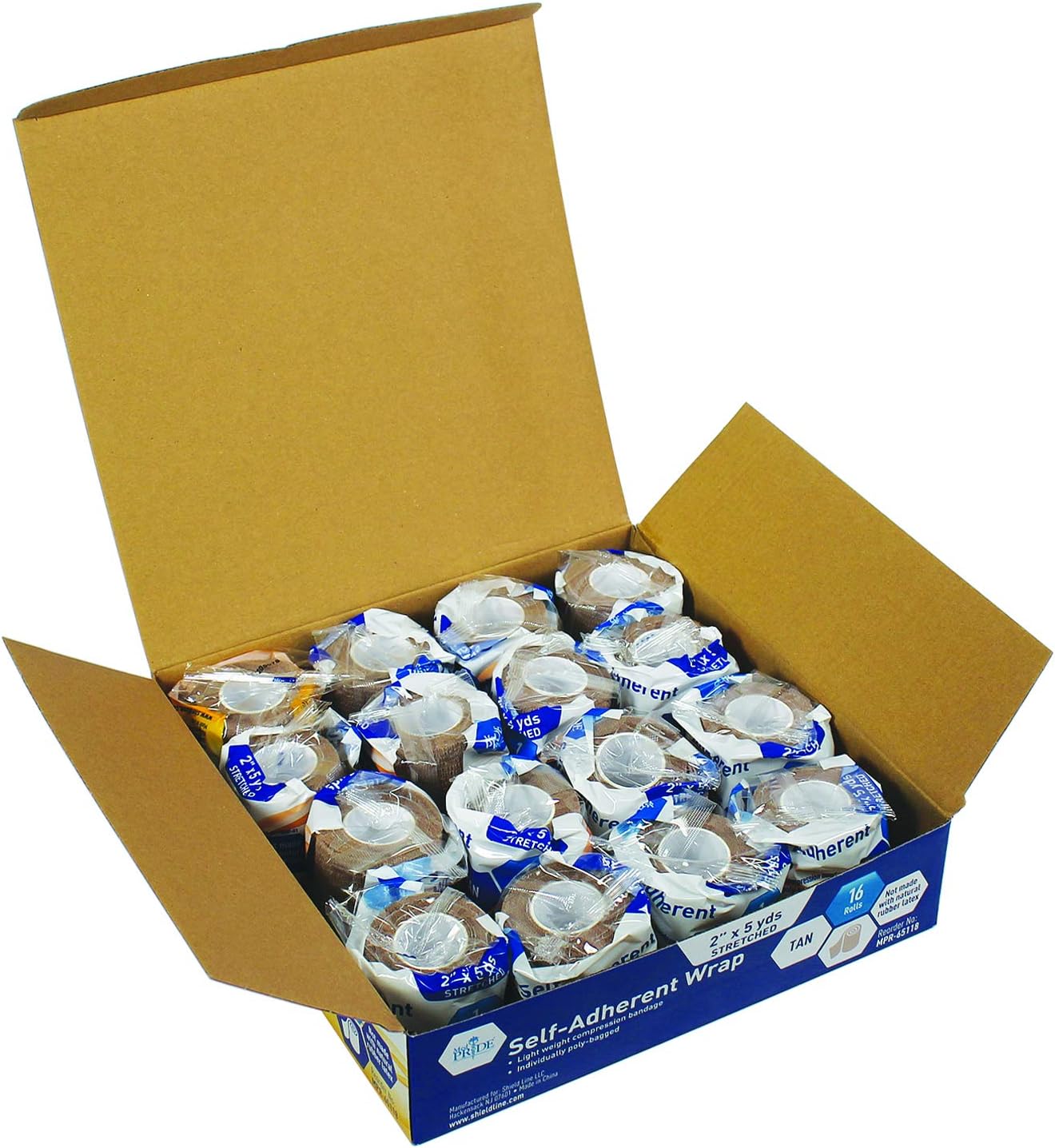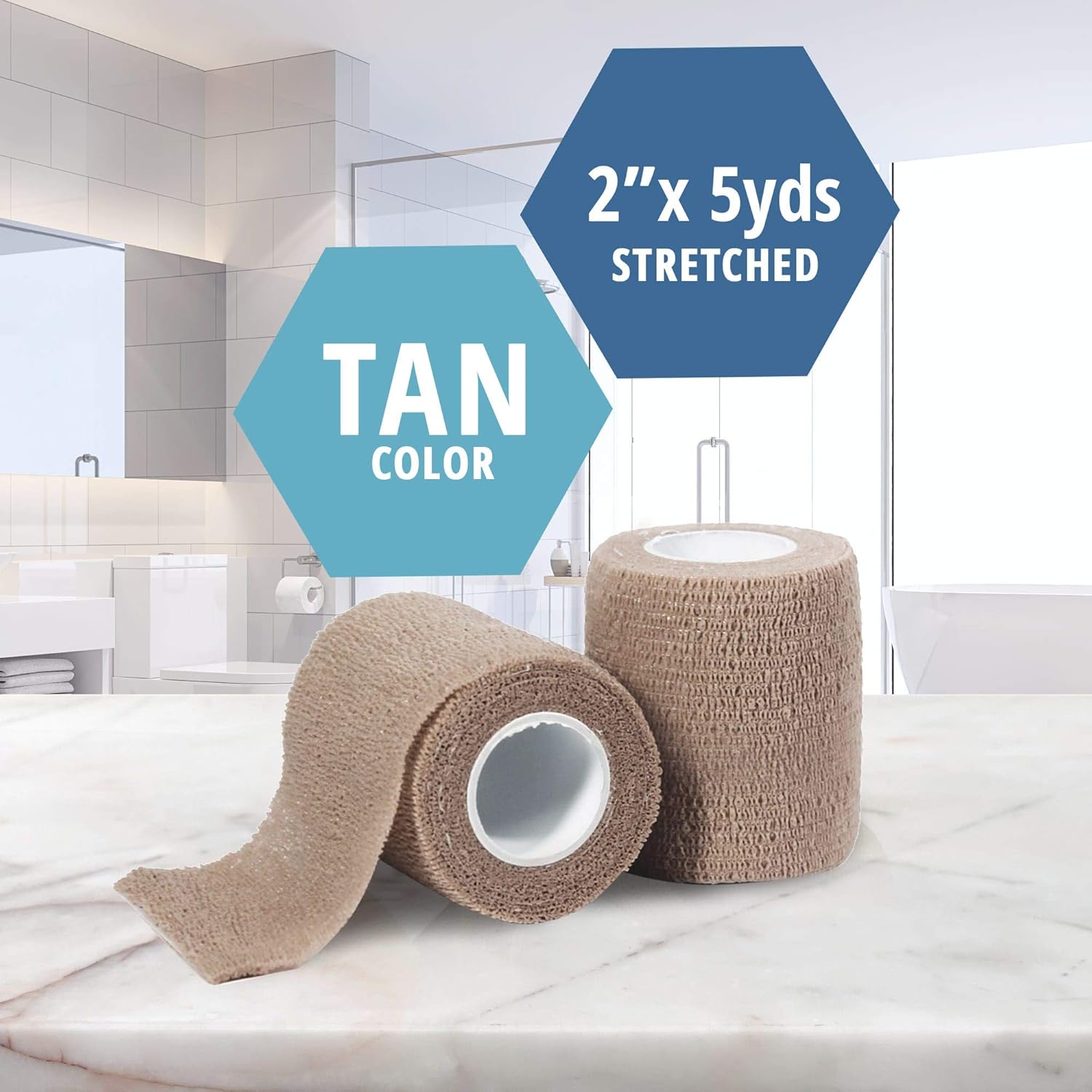 Medpride Self-Adherent Wrap - Athletic Flex Tape First Aid Bandages 16 Rolls, Tan, Latex Free