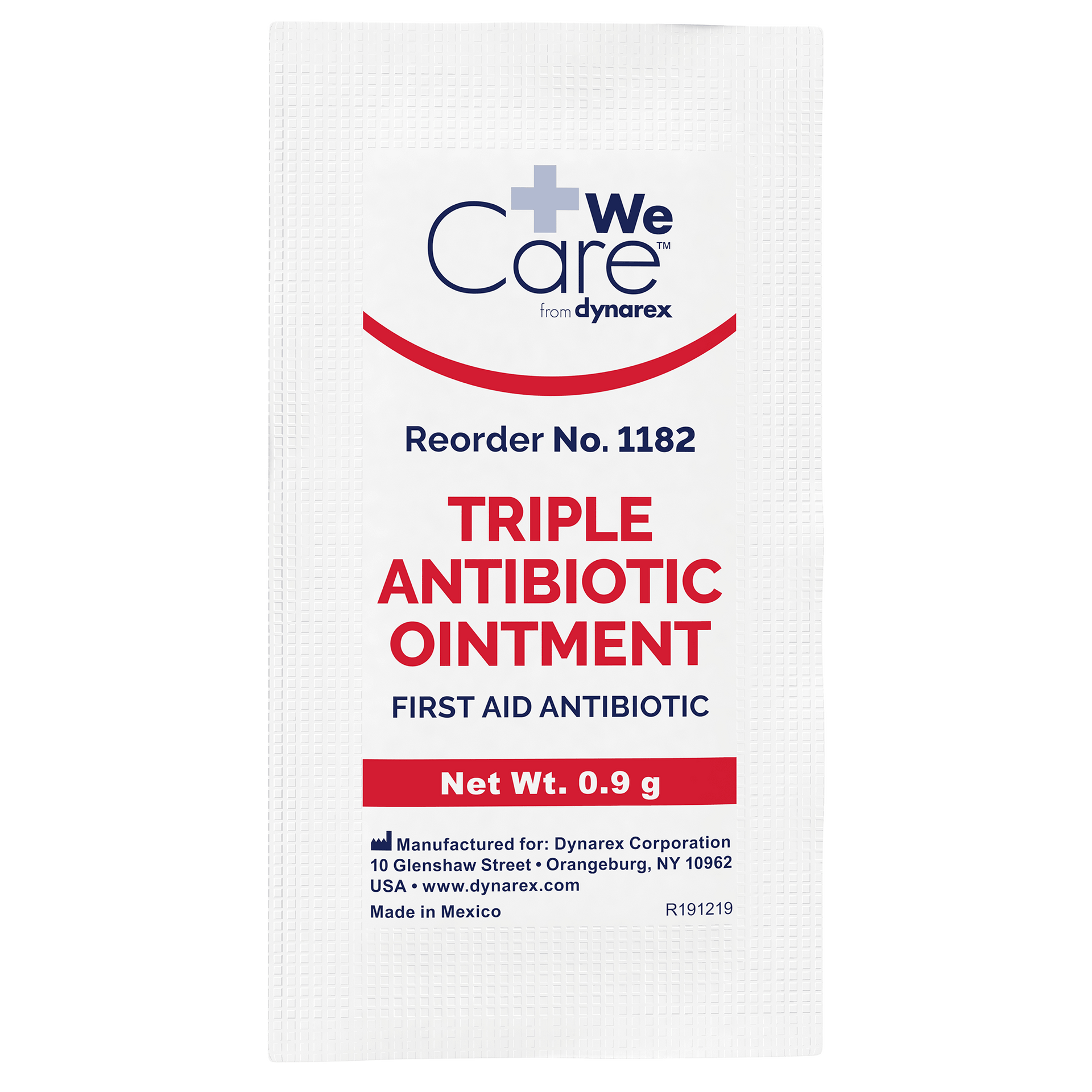 Dynarex Triple Antibiotic Ointment is a topical antibiotic designed to help minimize the risk of infection in minor cuts, scrapes, and burns. The triple-acting formula helps repair skin and inhibit the growth of harmful bacteria. This high-quality Ointment is available in convenient single-use packets for effortless kit-packing and easy-open tubes for quick application.